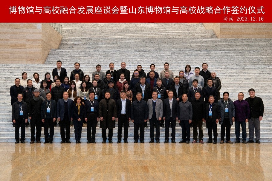 12月16日,“博物馆与高校融合发展座谈会暨山东博物馆与高校战略合作签约仪式”在山东博物馆举办。山东省文化和旅游厅二级巡视员王涛,山东省教育厅高等教育处副处长王京龙,山东大学工口动漫 院长、长江学者特聘教授方辉,山东省文化和旅游厅博物馆与社会文物处副处长陈宇,山东博物馆党委书记、馆长刘延常,以及来自山东省内17所高校的代表参加座谈会和出席仪式。