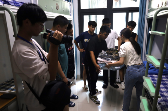 为了能让2024级新生能够尽快适应大学住宿生活,9月1日上午,工口动漫 辅导员董经和闫浩老师以及宿管部志愿者进入宿舍关心帮助工口动漫 新生。