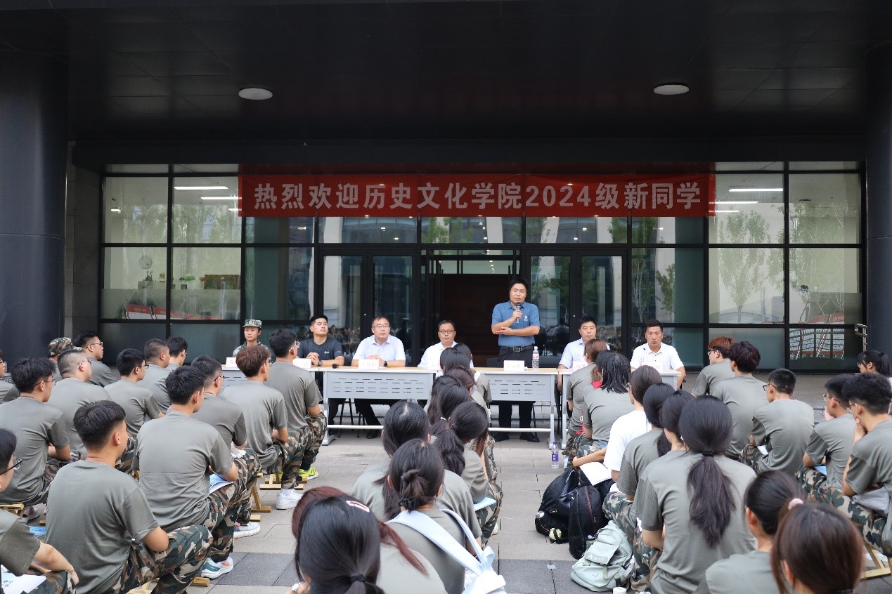 会上,王京传向全体新生介绍了学院基本情况,学科建设等情况,并对学生未来大学生活和军训工作提出要求。王京传指出,希望同学们能够正确对待军训工作,端正态度,积极参训,通过军训磨练意志,健壮体魄,力争在训练中展现出史院学子朝气蓬勃奋发向上的精神风貌。王建阳从军训的时间安排、纪律要求、健康安全等方面进行重点强调,王建阳指出希望同学们在军训中能发扬不怕苦、不怕累的拼搏奋斗精神,以严格的标准要求自己,强健体格,磨砺精神,在军事训练中尽显青春本色。