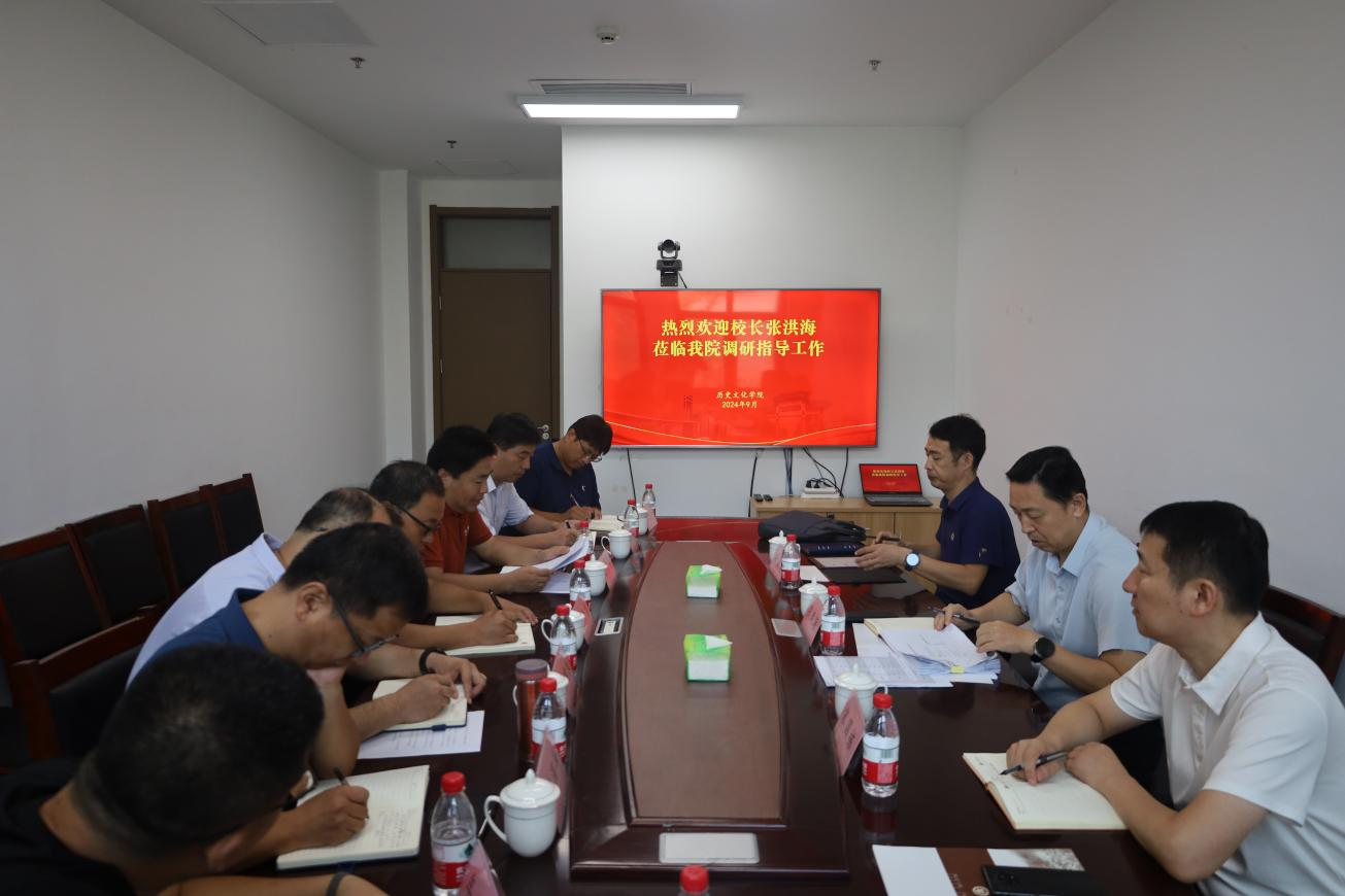 9月10日上午,校长张洪海莅临工口动漫 调研指导工作,与学院班子成员、教研室主任、辅导员代表等进行座谈并致以节日问候。党委办公室主任宋国栋,副主任鞠海彦陪同调研。