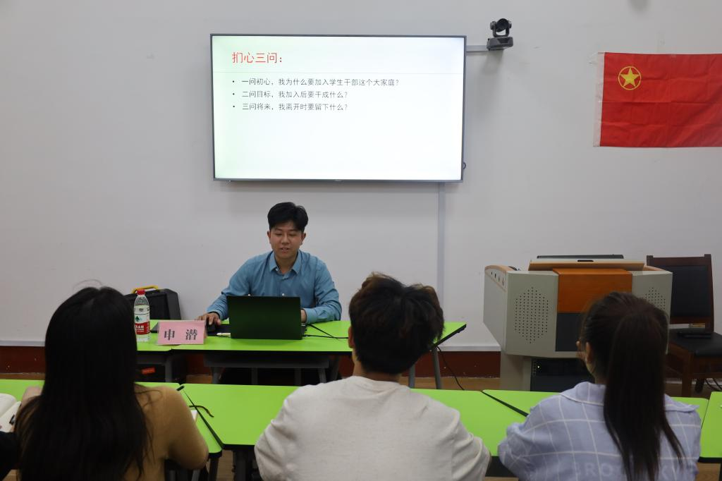 培训会上,申潜分享了自己在学生干部岗位上的工作经验和心得。他结合自己的实践经历,详细阐述了如何更好地履行职责、如何有效组织活动、如何处理人际关系等学生干部必备的素养。在互动环节,申潜耐心解答了师弟师妹们提出的问题,无论是关于团队协作、领导能力培养还是平衡工作与学习,都给出了专业且实用的建议。学院领导对申潜的返校表示热烈欢迎,并希望他能继续发挥优秀毕业生的榜样作用,为学院的学生干部队伍建设起到积极作用。同时,也鼓励更多的优秀毕业生像申潜一样,重返母校,分享自己的经验总结,帮助更多的师弟师妹成长成才。