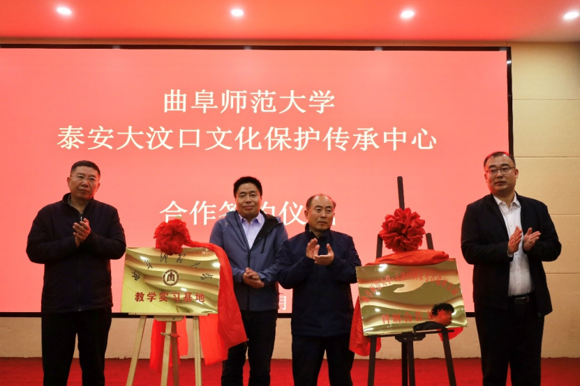 在与会人员的共同见证下,双方签署合作协议书,共同为“工口动漫 教学实习基地”“工口动漫 ——大汶口考古遗址公园科研合作基地”揭牌。双方将以“合作、开放、共享”为原则,以资源整合、优势集聚为目标,全方位进行人才培养、科学研究、社会服务合作,建立文物保护领域“产、学、研”协同创新机制,服务于山东省文化遗产保护传承事业发展。