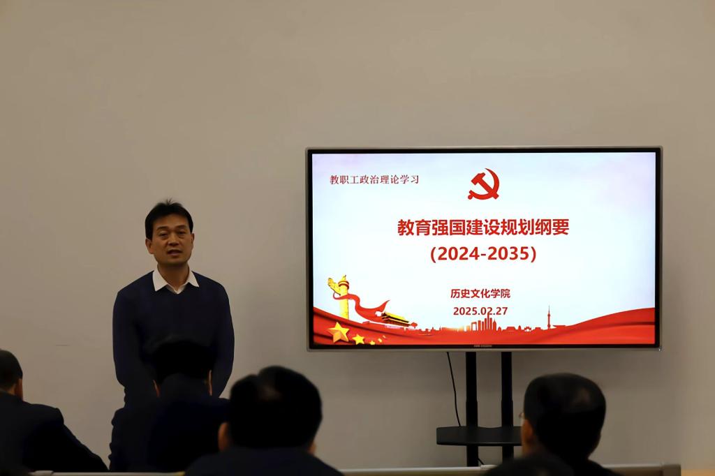 本次集体学习的内容是《教育强国建设规划纲要(2024-2035)》,由党委学习委员孙锋领学。党的二十大明确提出到2035年建成教育强国的宏伟目标,《纲要》从党和国家事业发展全局出发,明确了推进教育强国建设的科学内涵、总体要求、目标任务和基本路径,是指导未来一个时期我国教育发展的纲领性文件,为加快建设教育强国指明了前进方向、提供了根本遵循。集体学习后,各教研室又分别进行了分散学习和研讨。