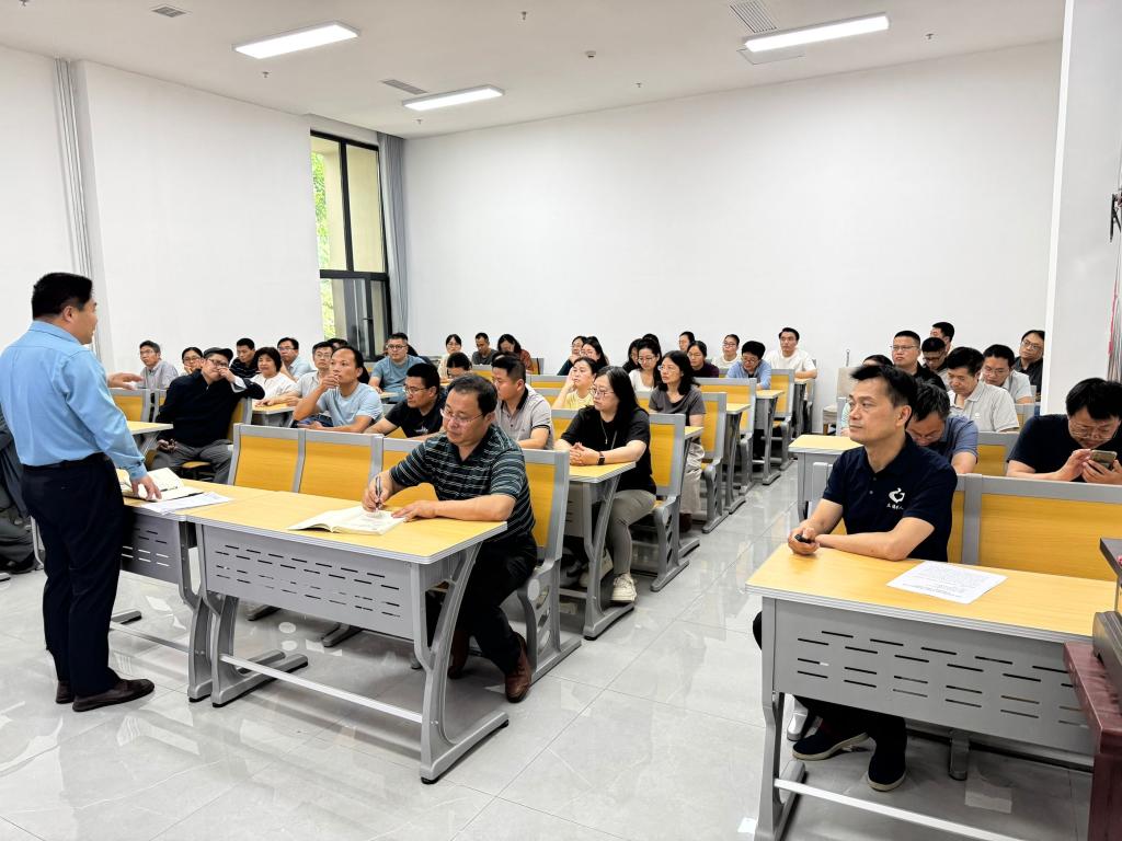 2025年5月29日下午,工口动漫 在孔子书院B120教室举行教职工全员研训暨政治理论学习第14期活动。活动由学院副院长王京传主持,学院党委学习委员孙锋领学,在校教师近60人参加研训。
