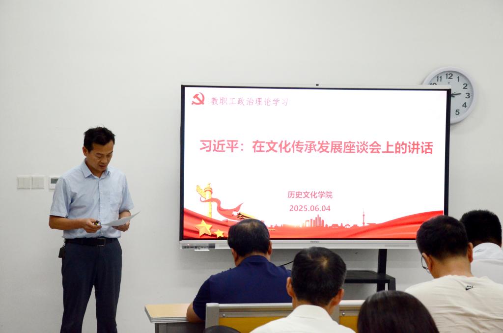 全体教职工首先集体学习了习近平总书记于2023年6月2日在文化传承发展座谈会上的讲话。习近平指出,中华优秀传统文化有很多重要元素,共同塑造出中华文明的突出特性。在五千多年中华文明深厚基础上开辟和发展中国特色社会主义,把马克思主义基本原理同中国具体实际、同中华优秀传统文化相结合是必由之路。习近平强调,在新的起点上继续推动文化繁荣、建设文化强国、建设中华民族现代文明,是新时代新的文化使命,要坚定文化自信、担当使命、奋发有为,共同努力创造属于我们这个时代的新文化,建设中华民族现代文明。