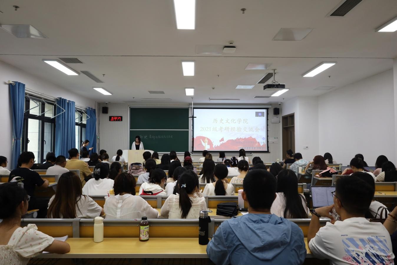 在文博文管专业会场中,陈德洋老师结合历年考研数据,从院校选择、专业规划等宏观层面为学生提供建议。随后,由李珊珊等6名2021级学生分享考研备考经验,并就考前准备、专业实习等问题进行解答。历史学专业会场中,王悦等5名2021级学生结合自身考研经历分享备考心得,并针对专业跨考、考研心态等问题提出建议。