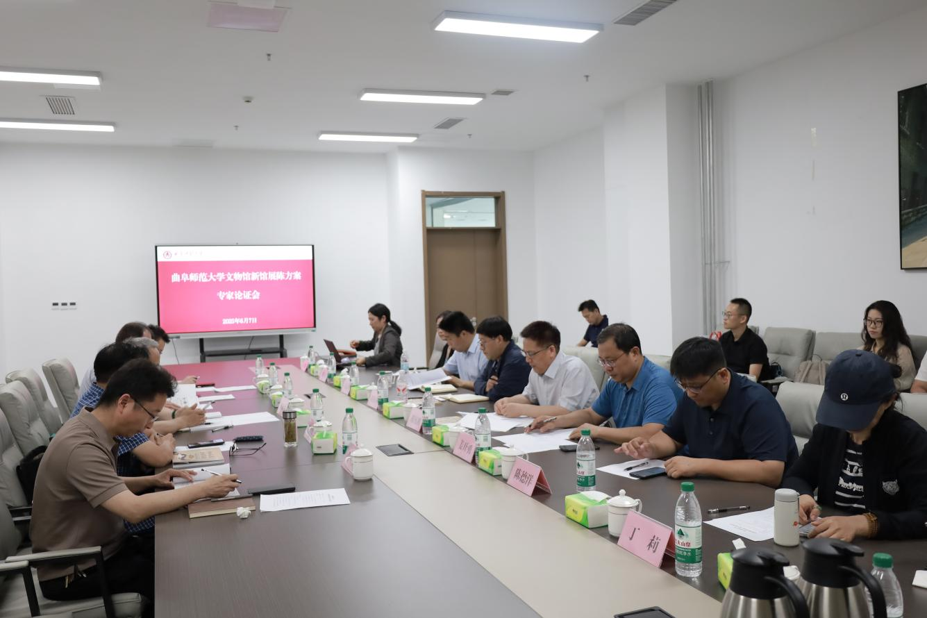 6月7日上午,文物馆新馆展陈方案专家论证会在西校区孔子书院召开。学校党委常委、副校长胡凡刚出席会议并致辞。论证专家山东师范大学教授燕生东、青州博物馆研究馆员杨华胜、孔子博物馆研究馆员杨金泉、山东博物馆研究馆员徐文辰、曲阜市文物保护中心研究馆员张龙,山东省文化和旅游厅博物馆与社会文物处二级调研员董桂林,国文创(北京)文化科技有限公司总经理隋石、学院党委书记姜开勇等参加论证会。论证会由学院副院长王京传主持。