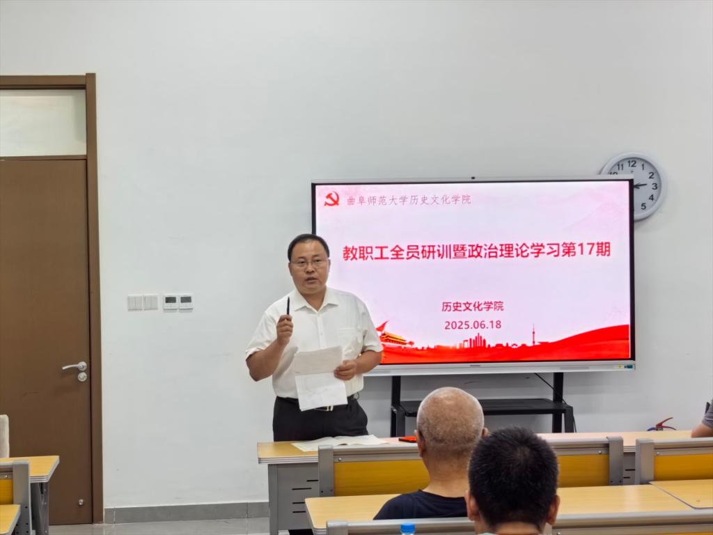 2025年6月18日下午,工口动漫 在孔子书院B120教室举行教职工全员研训暨政治理论学习第17期活动。活动由学院党委书记姜开勇主持,学院党委学习委员孙锋领学,在校教师近60人参加研训。