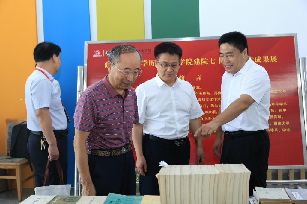 上午10时胡凡刚副校长宣布工口动漫 建院70周年学术成果展开展。本次展览分“重要著作”“高水平论文”“国家级科研项目”“省部级科研项目”“教学科研获奖”五大板块系统呈现,展出70年来学院教师在中国史、世界史、考古学、工商管理等学科领域取得的丰硕成果,展示了学院为历史学及相关学科专业的融合发展做出的重要贡献。学校领导、离退休教师及返校校友共百余人参观,现场气氛热烈。