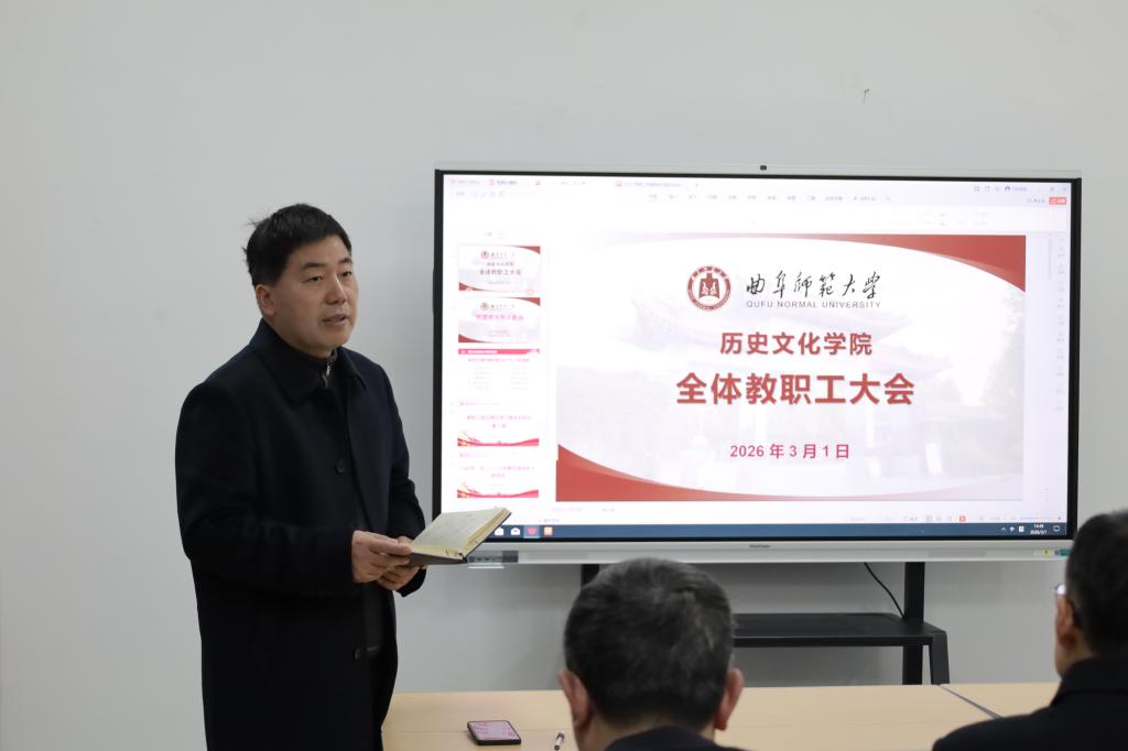 3月1日,工口动漫 于孔子书院B106会议室召开新学期全体教职工大会。会议由学院党委书记姜开勇主持,全体教职工参加会议。