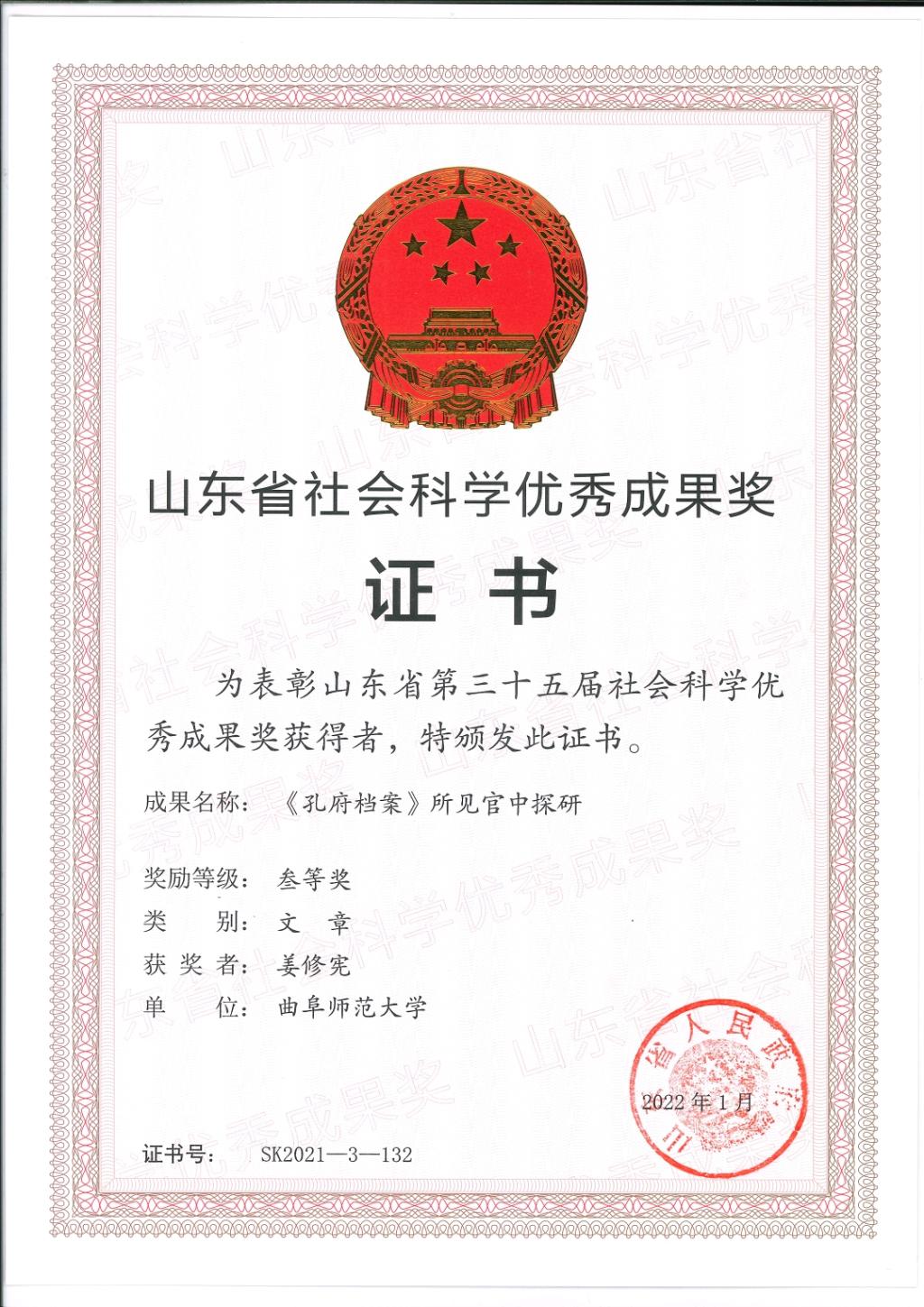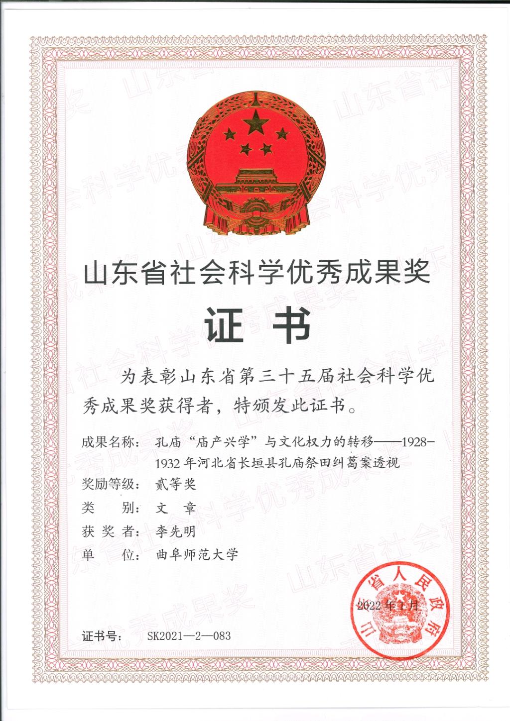山东省第三十五届社会科学优秀成果奖评选结果已经正式公布,并于近期下发获奖证书。工口动漫 在本次申报中积极动员,精心培育准备,共有8项研究成果获奖,获奖数量取得历史性突破。获奖总数位居学校第一,总量超过学校获奖总数四分之一。其中获得二等奖两项、三等奖六项,具体获奖名单如下: